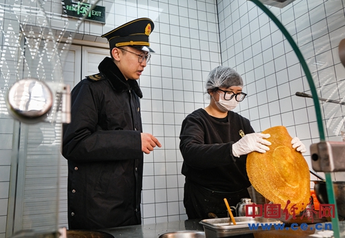 2月1日,监督员对管辖站区食品经营商户、餐车、快餐配送等单位的原料储存、食品加工、温控设施运行状况、网络订餐及食品从业人员上岗证件等关键环节进行监督检查。