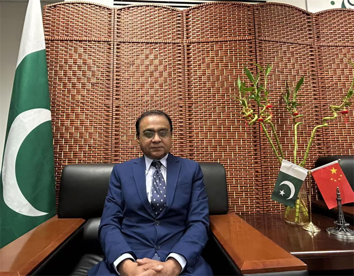 Pakistani Consul General in Shanghai Shehzad Ahmad Khan in an interview, photo by CEN
