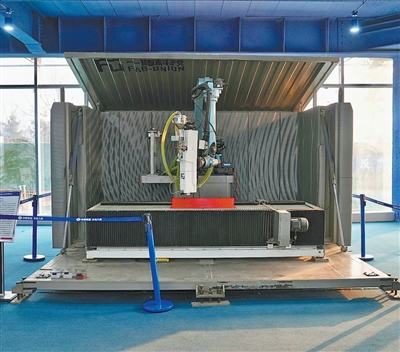河北“雄安之翼”主楼一层的“胶囊工厂”内,3D打印机在打印外墙板材。 |