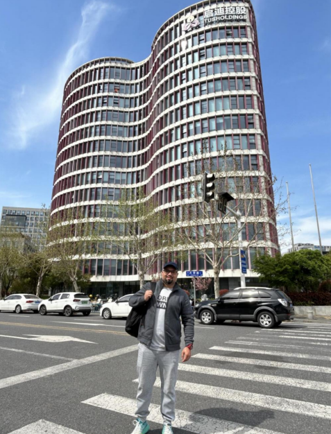 Dr. Sami Iqbal in front of his office building in Nanjing, photo by CEN